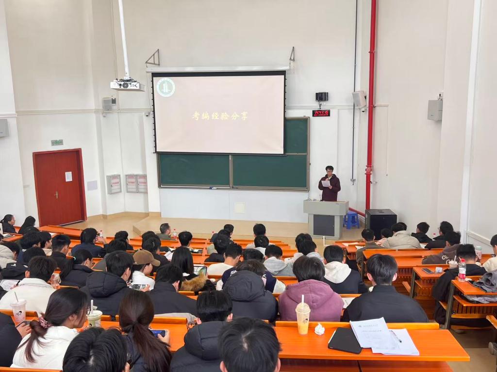 在考编经验分享环节,我院成功上岸的学生代表结合自身备考经历,从考编政策解读、复习计划制定、专业技能提升、面试技巧掌握等方面进行了全面分享。他毫无保留地介绍了备考过程中的重点难点及应对策略,提醒同学们要提前规划职业方向,夯实专业基础,保持积极心态,为在场有考编意向的同学提供了极具针对性的参考。