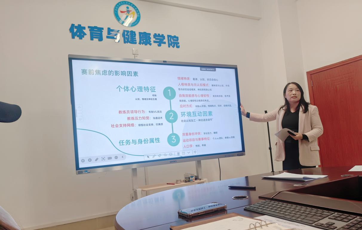 会议第三项议程,学生处心理咨询中心张紫馨老师以 “班级心理建设与学生心理疏导 —— 赛前焦虑识别与调控实操” 为主题开展培训。结合体育生群体特点,张老师从五方面展开讲解:一是剖析体育生赛前焦虑的成因与表现,帮助班主任建立基础认知;二是解读四类高频焦虑的具体特征与识别方法,提供明确判断标准;三是阐述赛前焦虑的多维度干预策略,涵盖心理疏导技巧、情绪调节方法等实操要点;四是分享针对性班级心理活动方案,提供落地性强的工作抓手;五是强调重点学生的关注与支持路径,指导建立个性化帮扶机制。